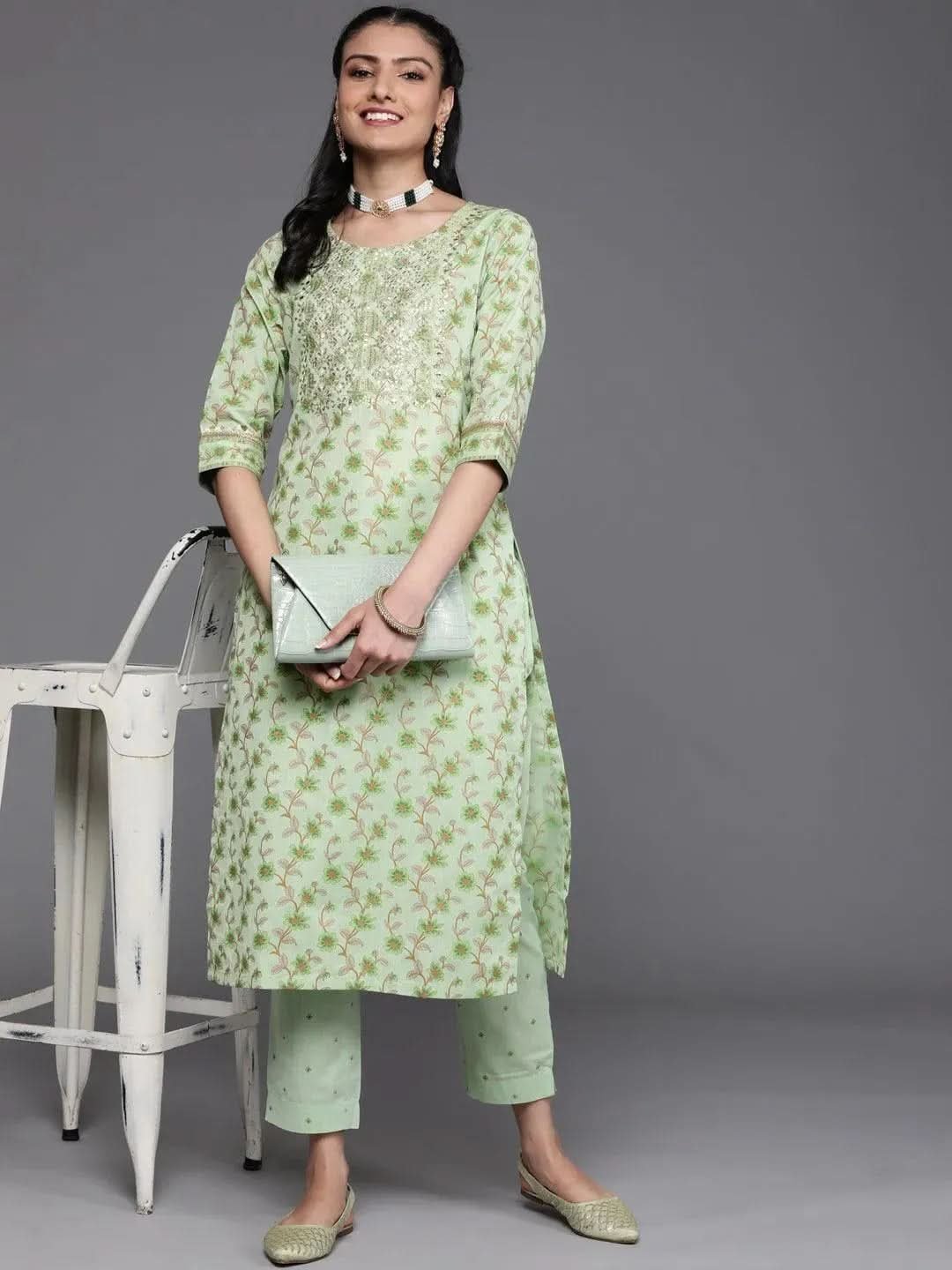 Green Yoke Design Cotton Silk Kurta