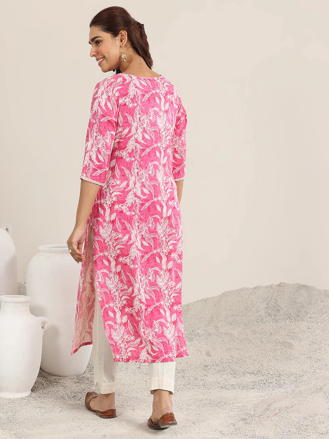 Pink Printed Rayon Straight Kurta